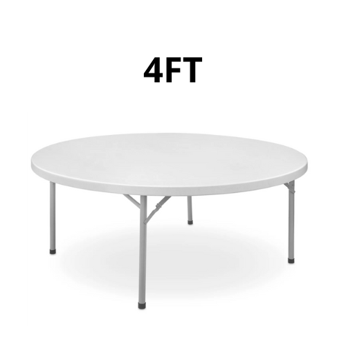 Previous Product Next Product Round Table (4ft, 5ft, 6ft) $12.00 – $17.00Price range: $12.00 through $17.00 round-table Choose an option4 foot5 foot6 footClear Round Table (4ft, 5ft, 6ft) quantity Add to Rental SKU: N/A Category: Tables Additional information Additional information round-table 4 foot, 5 foot, 6 foot Related products Quick View Quick View TablesSeminar Table (8 ft.) $18.00 Add to Cart Quick View Quick View TablesHalf Round Table (6 ft) $16.00 Add to Cart Quick View Quick View Tables, Portable Bar & shelvesTable Bar $65.00 – $105.00Price range: $65.00 through $105.00 Add to Cart This product has multiple variants. The options may be chosen on the product page